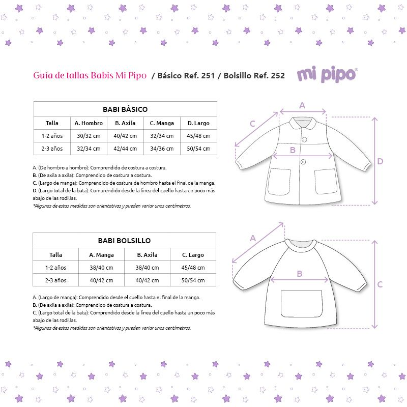 Este babi cuenta con dos bolsillos prácticos y un cierre delantero de botones, ideal para facilitar su uso. Los puños con goma garantizan un ajuste perfecto, mientras que la cinta en el cuello permite colgarlo fácilmente. Disponible en tallas 1-2 y 2-3, se adapta a las necesidades de los niños en crecimiento.