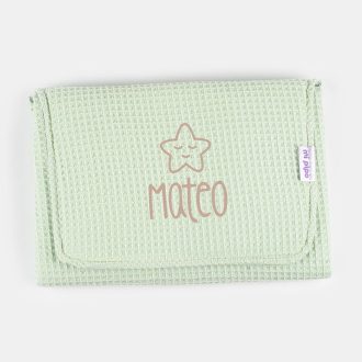 Fabricado en España con tejidos de alta calidad, el Cambiador Gofre Soft Personalizado está confeccionado en piqué gofre 100% algodón acolchado. Su diseño incluye un interior acolchado y plastificado que lo hace impermeable, asegurando la protección y confort de tu pequeño en todo momento.
