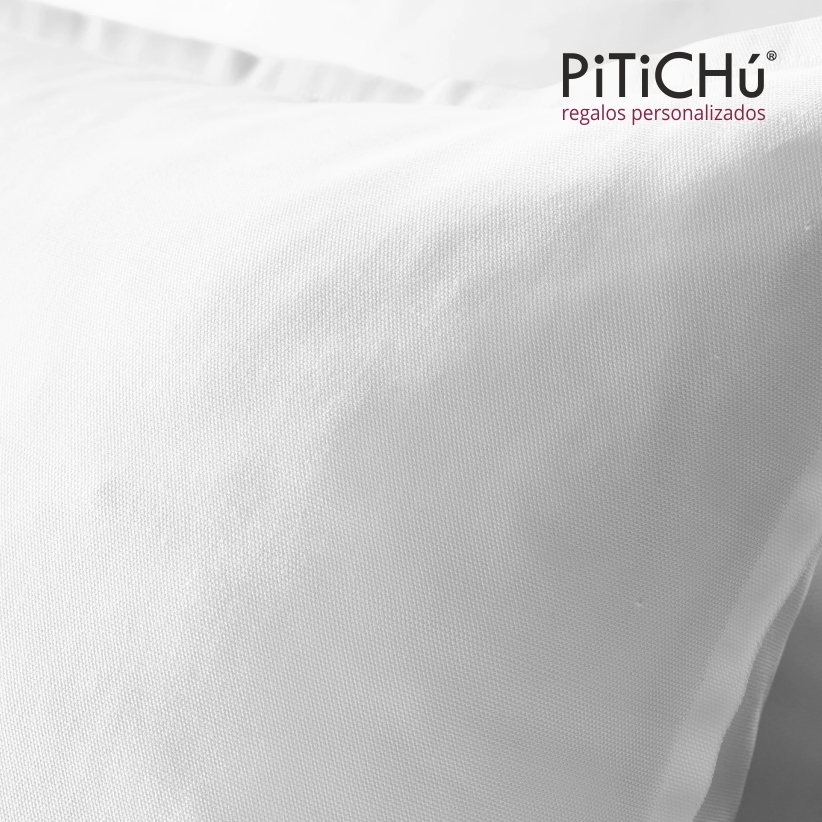 Es de color blanco roto, con tejido de algodón 100%, procedente de fuentes sostenibles. Tiene cremallera para sacar con facilidad la funda.