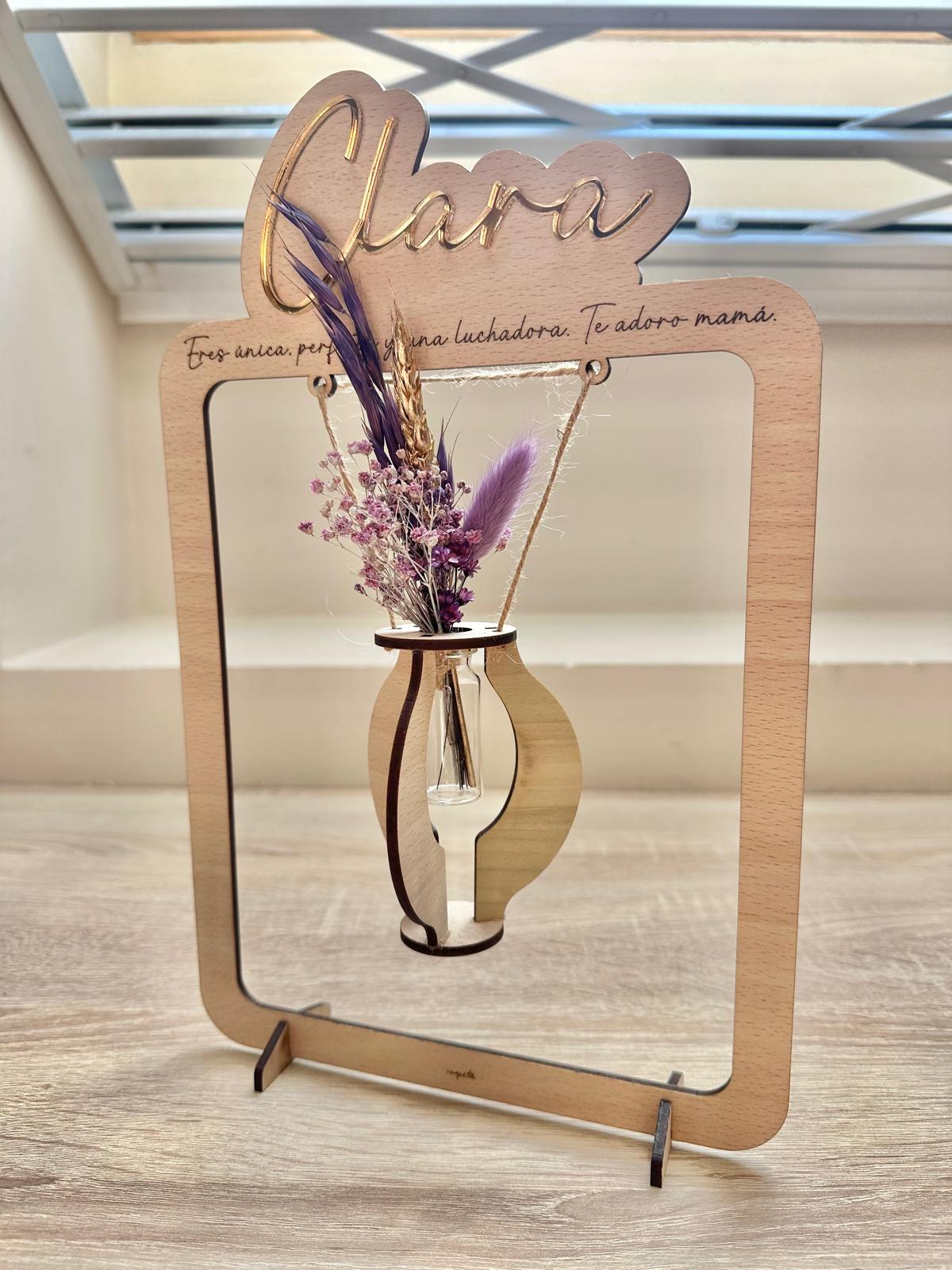 Su estructura incluye un marco de soporte que permite colgarlo fácilmente, aportando un toque sofisticado a cualquier espacio. Es un detalle que emociona tanto a testigos, padrinos, madrinas o personas muy queridas, convirtiéndolo en un recuerdo inolvidable.