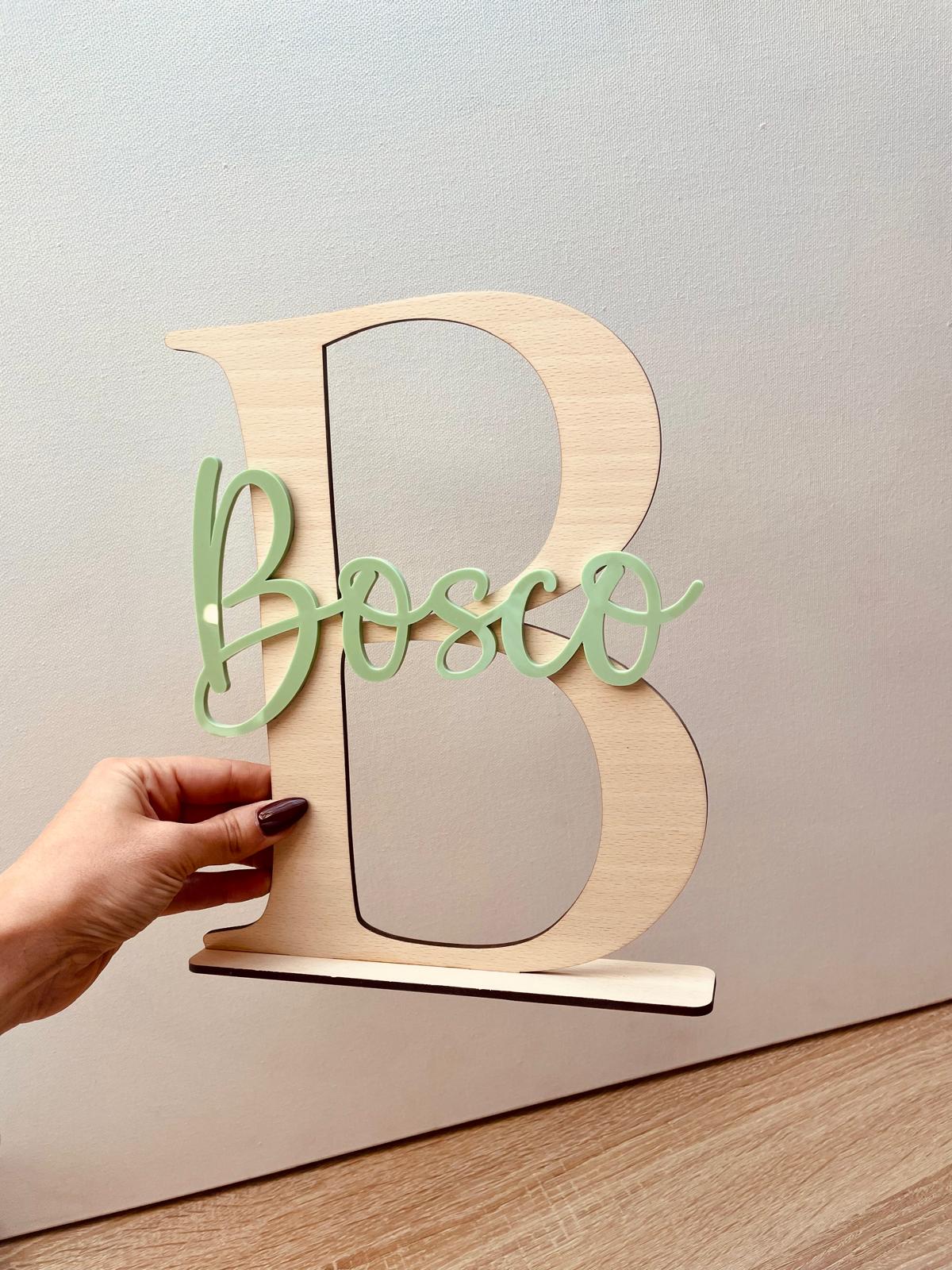 Transforma cualquier rincón de tu hogar o habitación infantil con un toque personal y elegante. Letra de madera de haya de 25 cm de altura, acompañada del nombre personalizado en metacrilato del color que mas te guste. Incluye peana. Es perfecta para agregar personalidad y estilo a tu decoración.