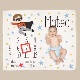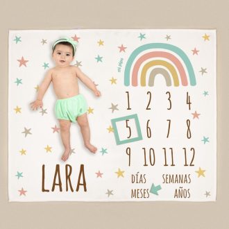 Haz que cada mes cuente con la manta cumplemés personalizada, un regalo que celebrará los momentos más preciosos de la vida de tu bebé.
