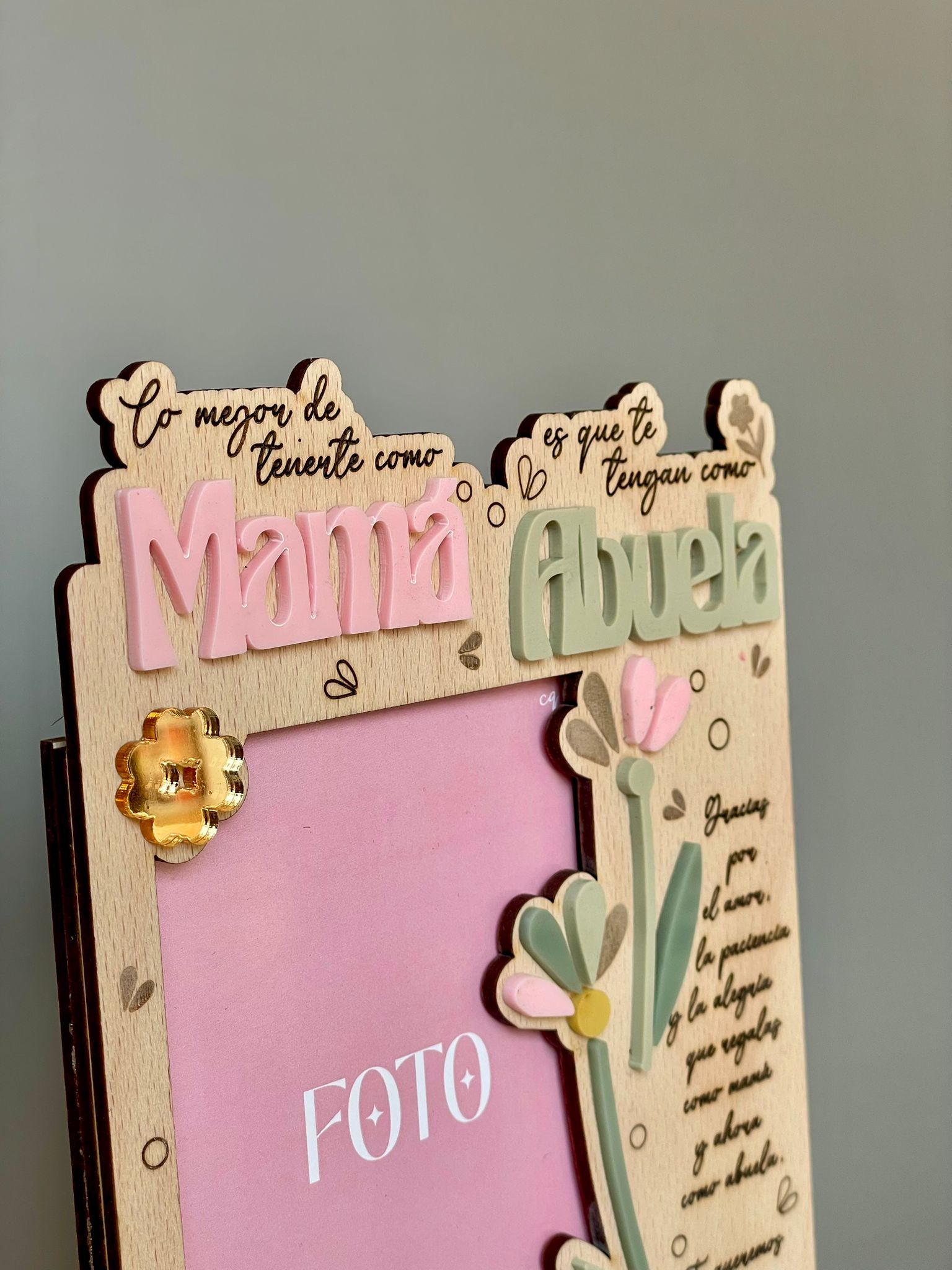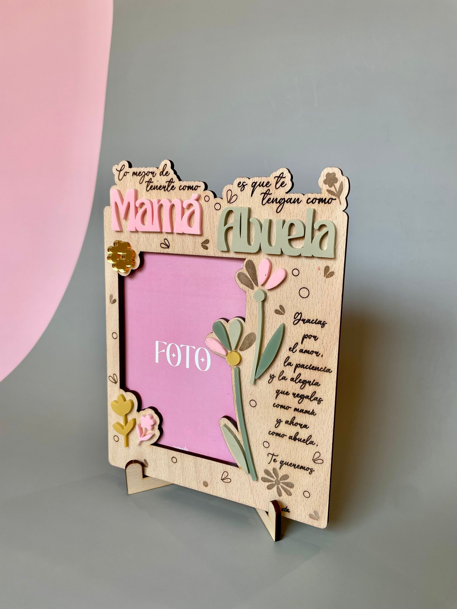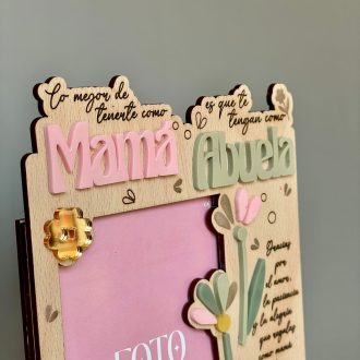 Regala un recuerdo especial con este marco de fotos en madera de haya dedicado a la Mamá y la Abuela perfecto para fotografías de 10×15 cm en vertical.