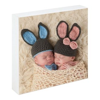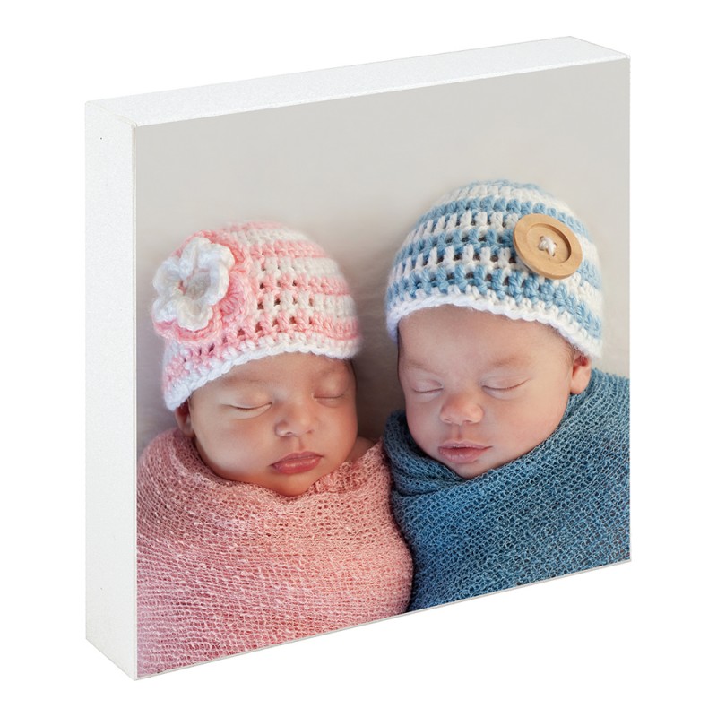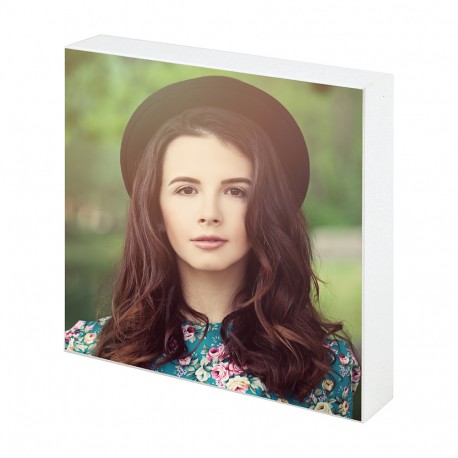 Taco de madera de 22MM macizo, con foto personalizada impresa en papel silk.