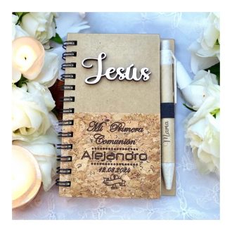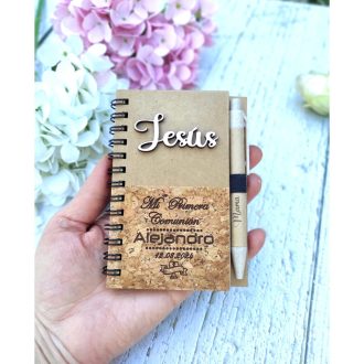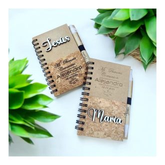 Descubre el regalo perfecto para tus invitados con la mini libreta con boli comunión personalizada. Este set no solo es práctico y elegante, sino que también es respetuoso con el medio ambiente. Ideal para tomar notas en cualquier momento, cada libreta se convierte en un detalle sostenible y único que tus invitados atesorarán.