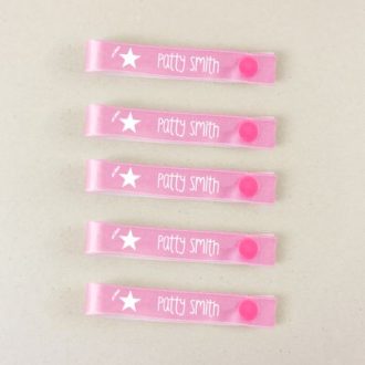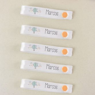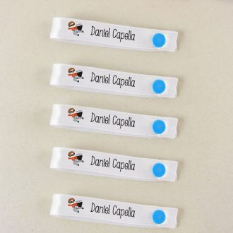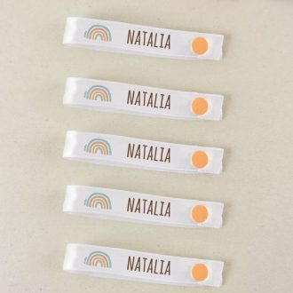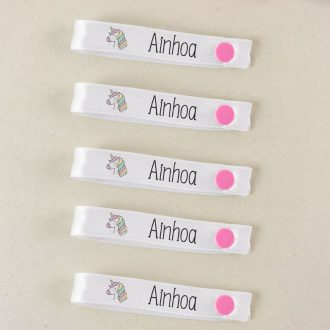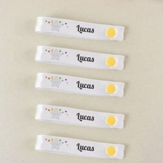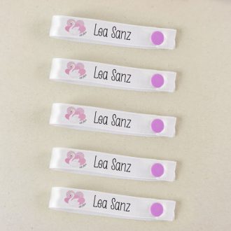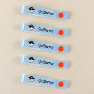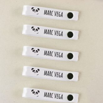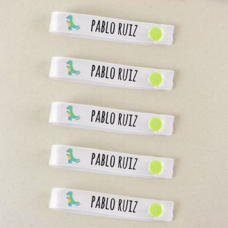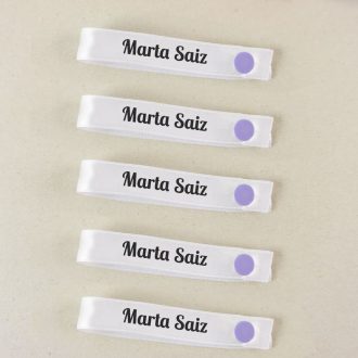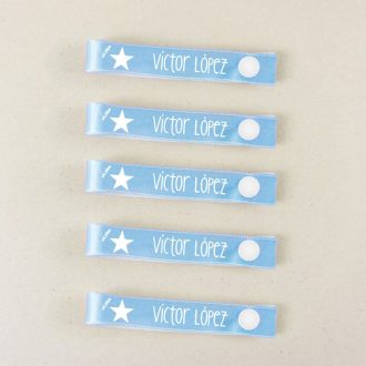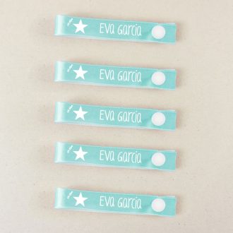 Lo más especial del pack 5 cintas para colgar ropa personalizadas es la opción de personalización. Puedes añadir hasta dos líneas con nombre y apellido, usando el tipo de letra que aparece en la imagen, para que cada cinta sea realmente exclusiva y reconocible.