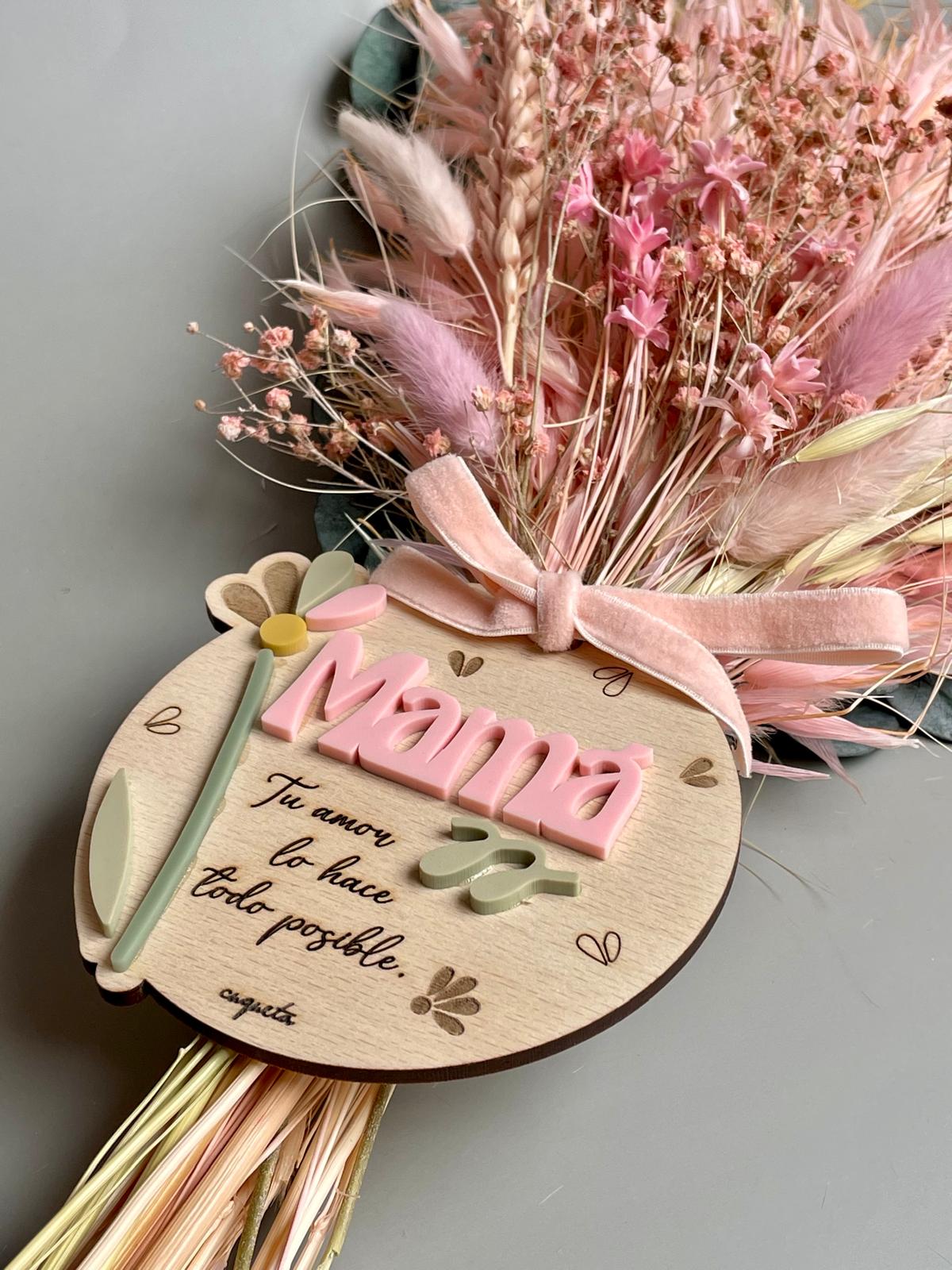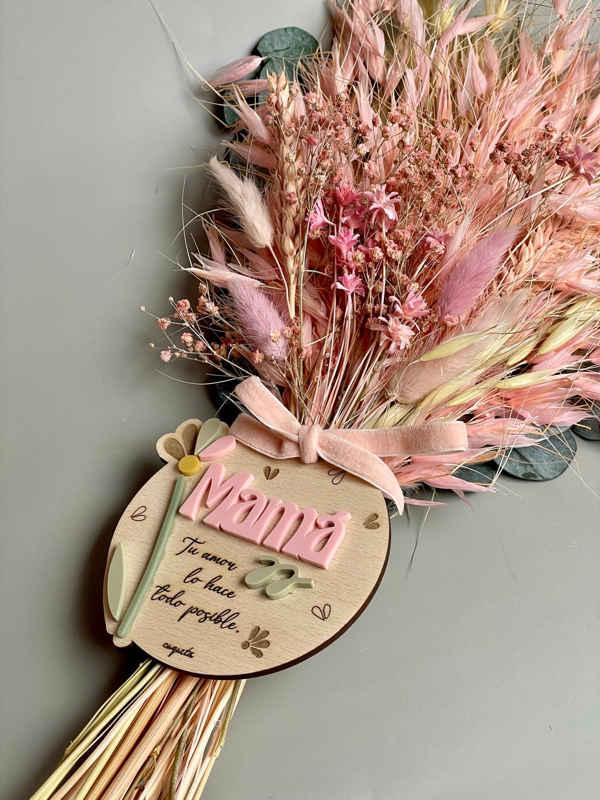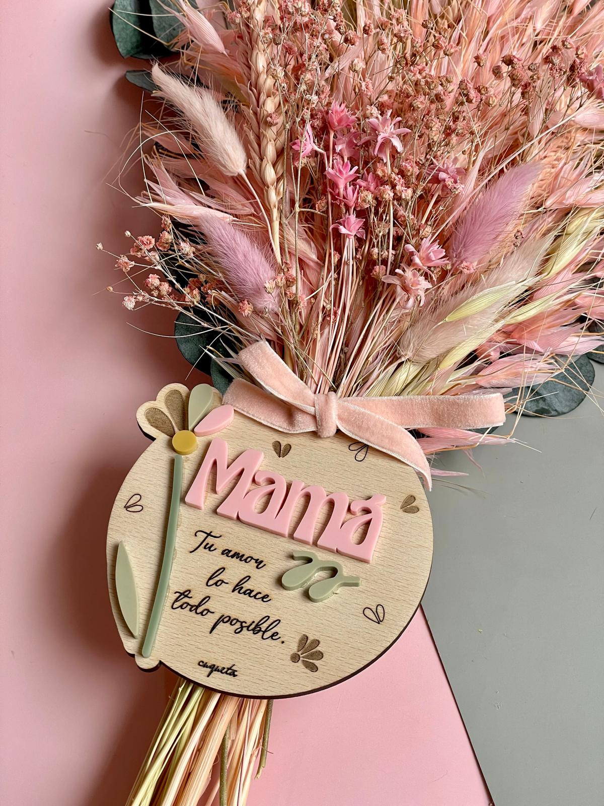 Si quieres personalizar la mini placa del ramo para Mamá, escríbenos en el apartado «Personaliza aquí», el nombre de quien lo regala (máx. 1/2 palabras, mas no cabe).